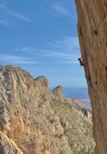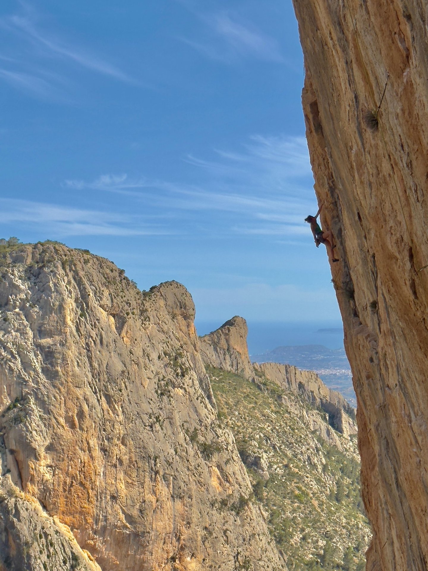 Escalada de regletas y poco desplome, buenas vías sin tener que subir hasta el Sherpa y recogido del viento cuando sube por el barranco.